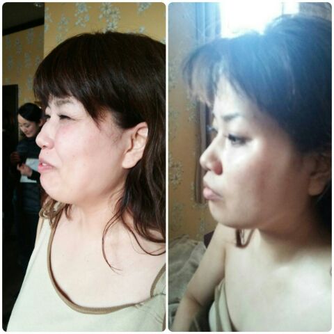 表情の違いはありますが、目じりの上がり具合、フェイスラインの違いや横幅の違いなど、見てわかるようにマッサージだけでもこのくらいの変化がありました!