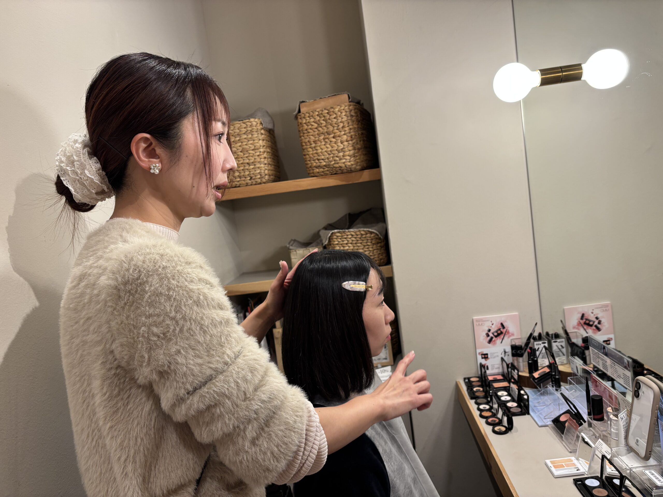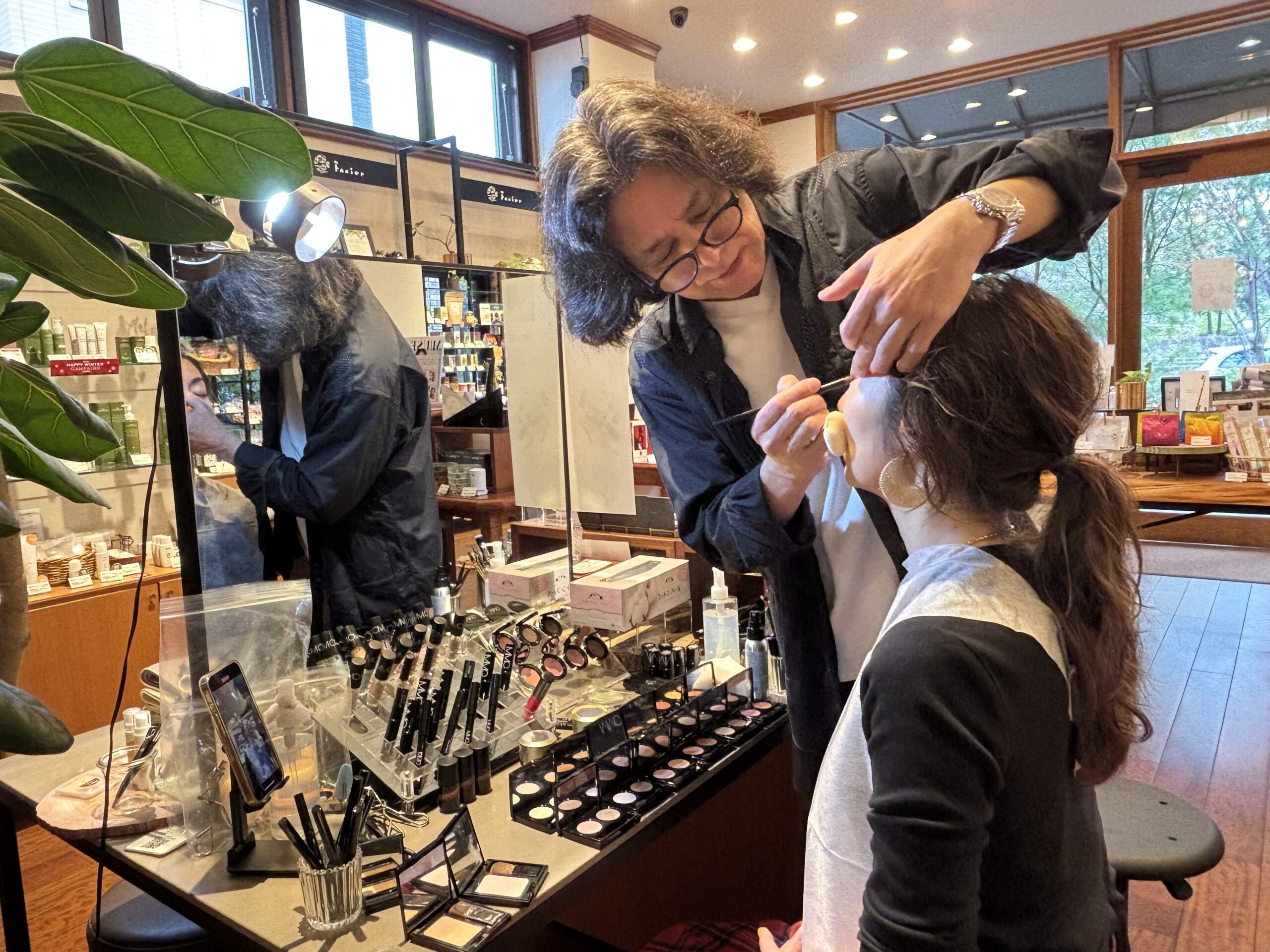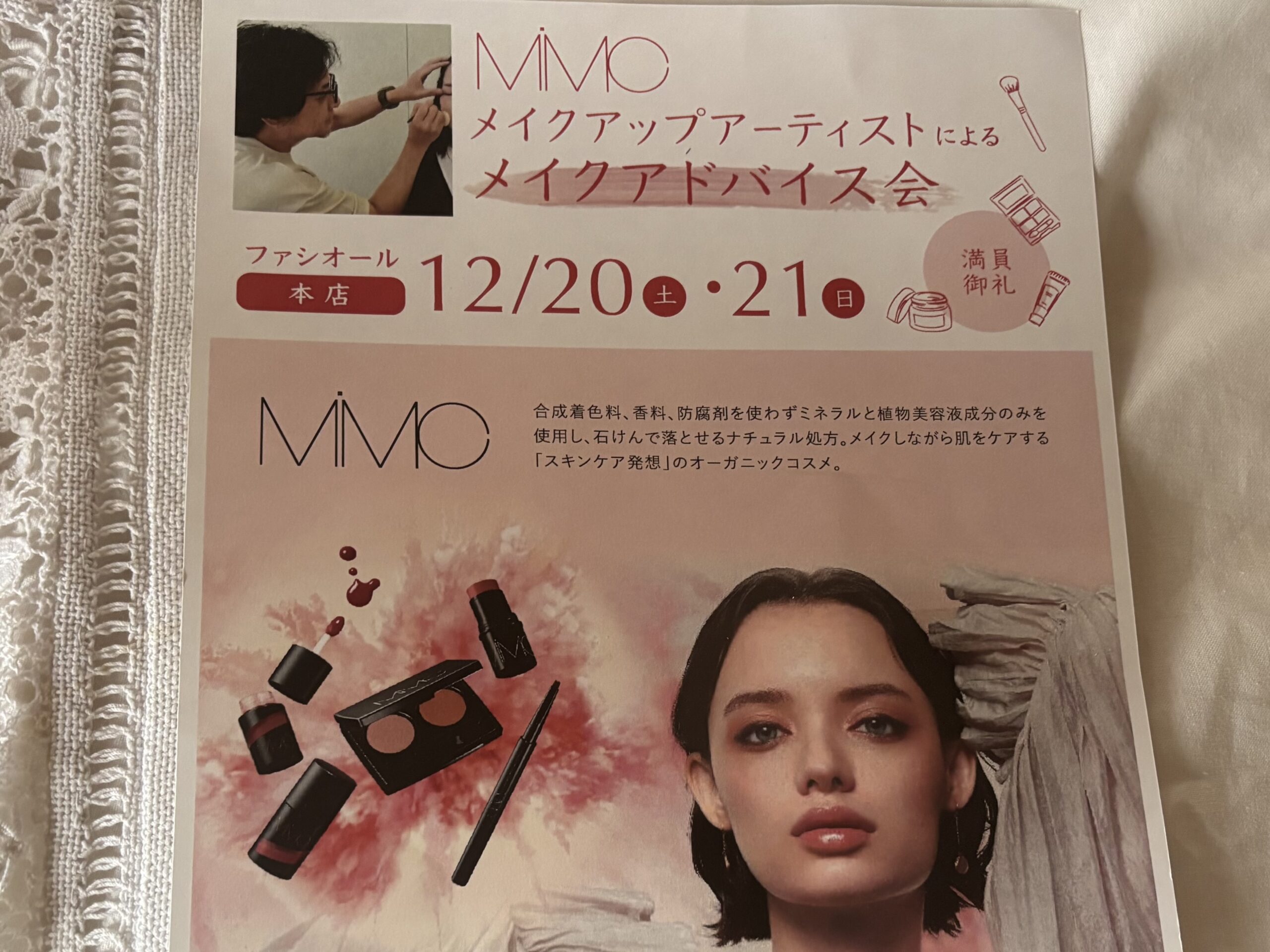 12月クリスマス時期に、ファシオール①福山本店と②神戸店両店で《オーガニックメイクコスメブランドMIMC》の雑誌等でお馴染みのトップメイクアップアーティストを招いての《最新メイクアップ術、個性を引き出すメイクレッスン会》を開催しました。