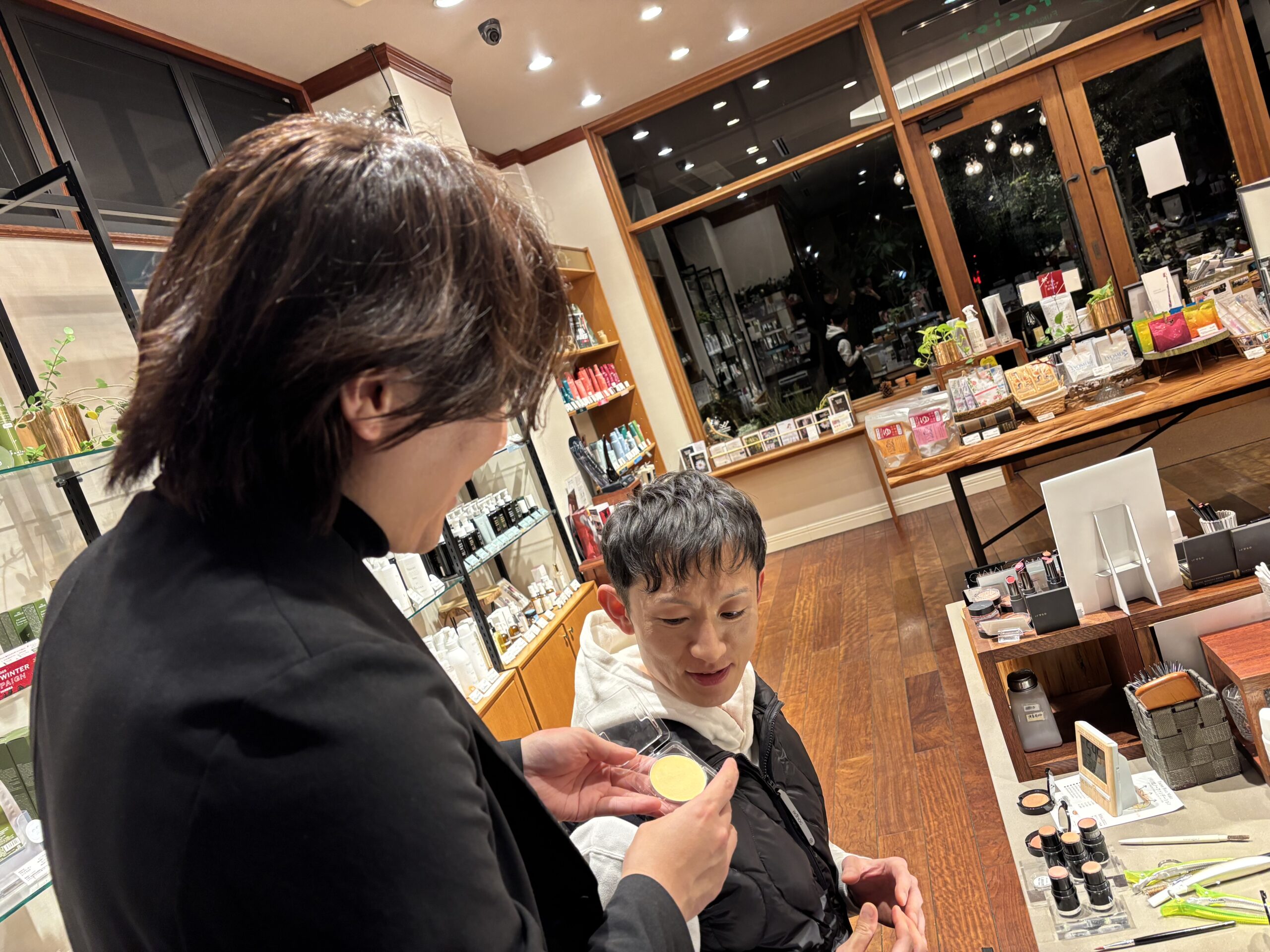 ↓ メンズの方のメイクアップレッスンの風景