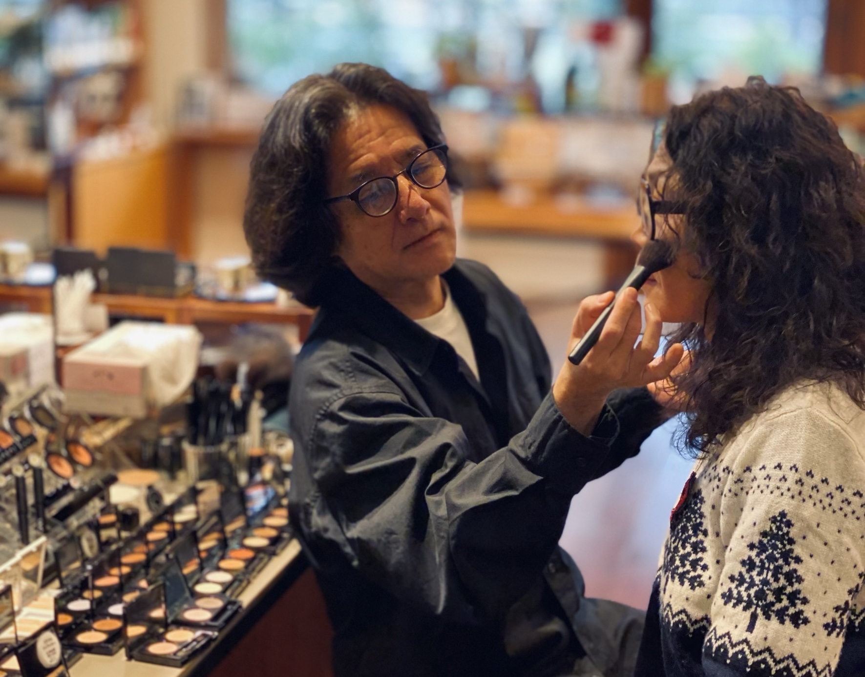 ↑ 私もメイクアップしてもらいました。クリスマスセーター毎年この時期着てます。