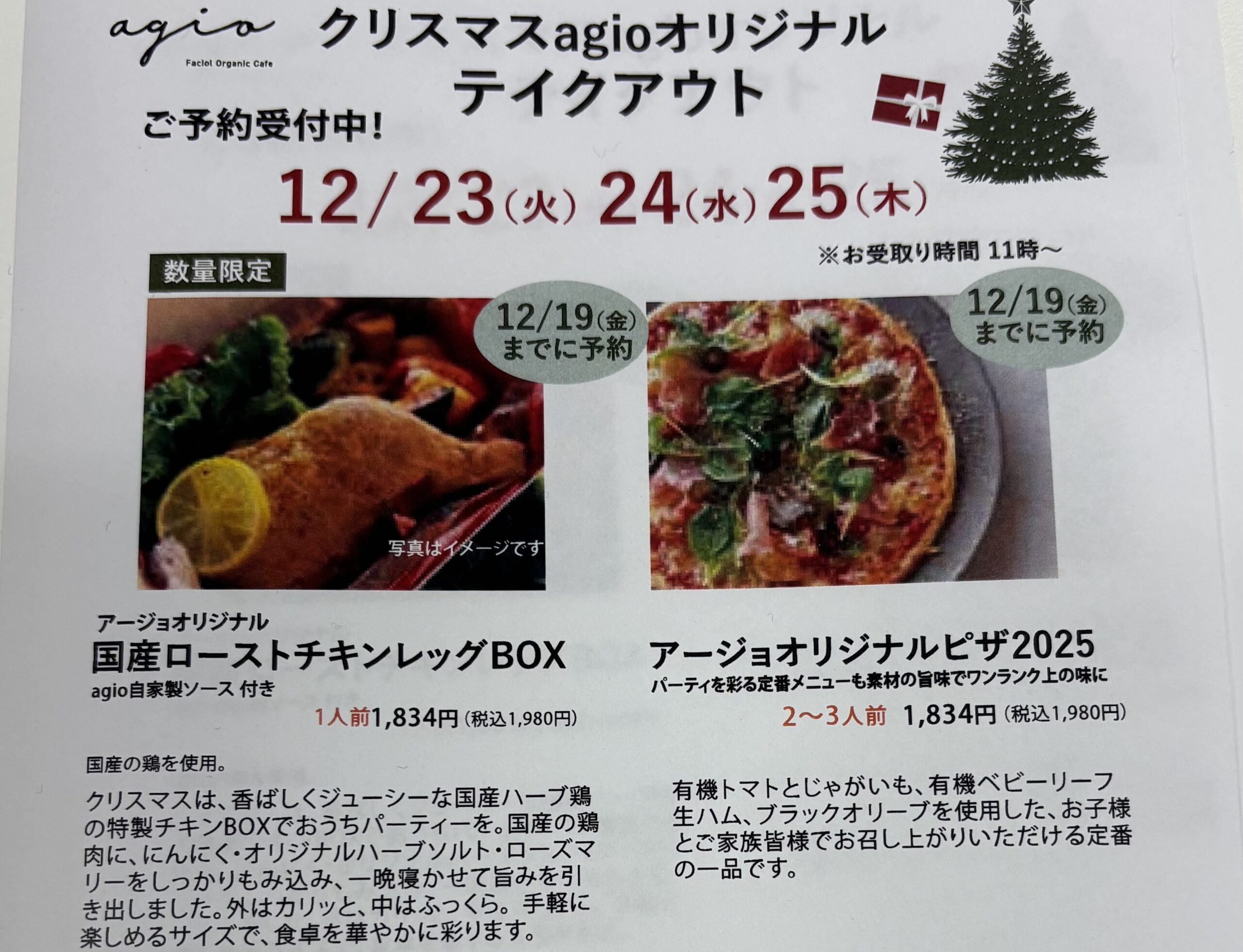 そして、福山フォシオールオーガニックカフェ《アージョagio》の毎年恒例のクリスマスローストチキンを注文し、ほんと毎年美味しいのだ。
