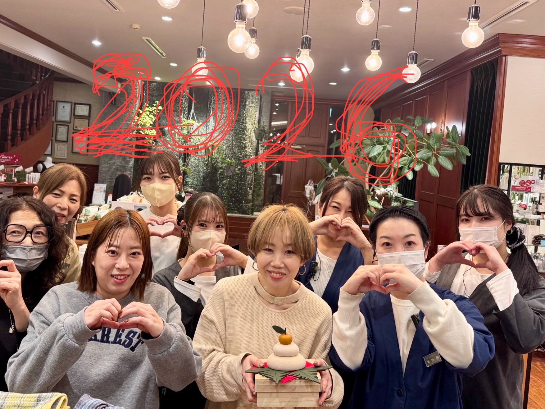 仕事納めの12月30日最後まで居たスタッフみんなとPhoto フォシオールスタッフは、みんな優しくて、仕事も真面目で、性格のいいスタッフばかりです。家族の様な関係で、本音で付き合い、みんな向上心の高いのだ。