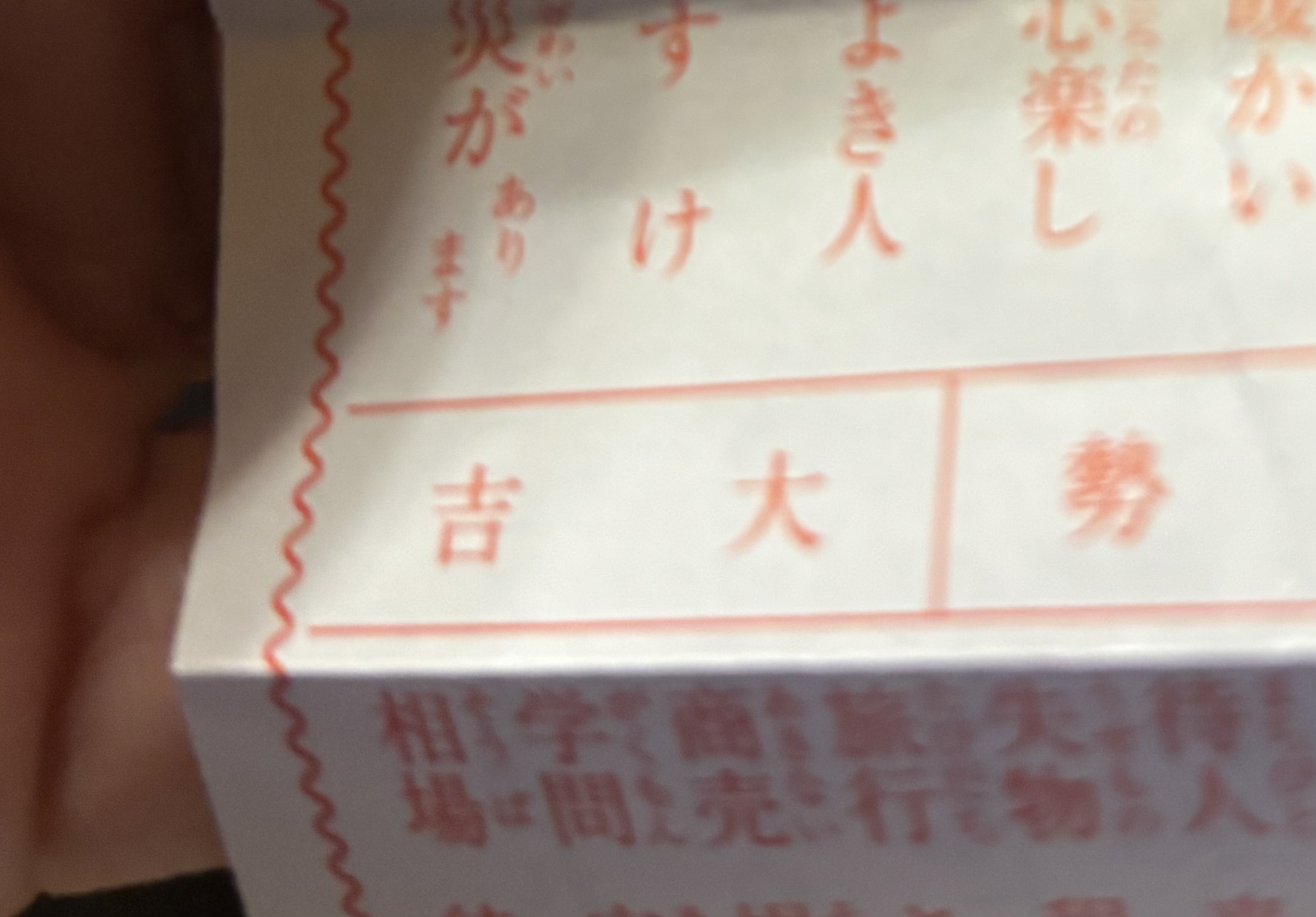 おみくじは、『大吉』でしたよ。油断すると悪くも転ぶ大吉です。気をつけますね。